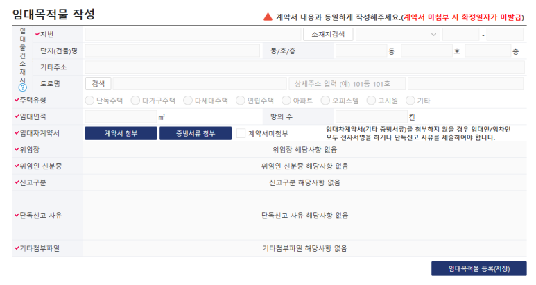 • 공동 임차인 혹은 공동 임대인일 경우, 계약서 내에 있는 모든 거래인의 정보를 입력해야 합니다.